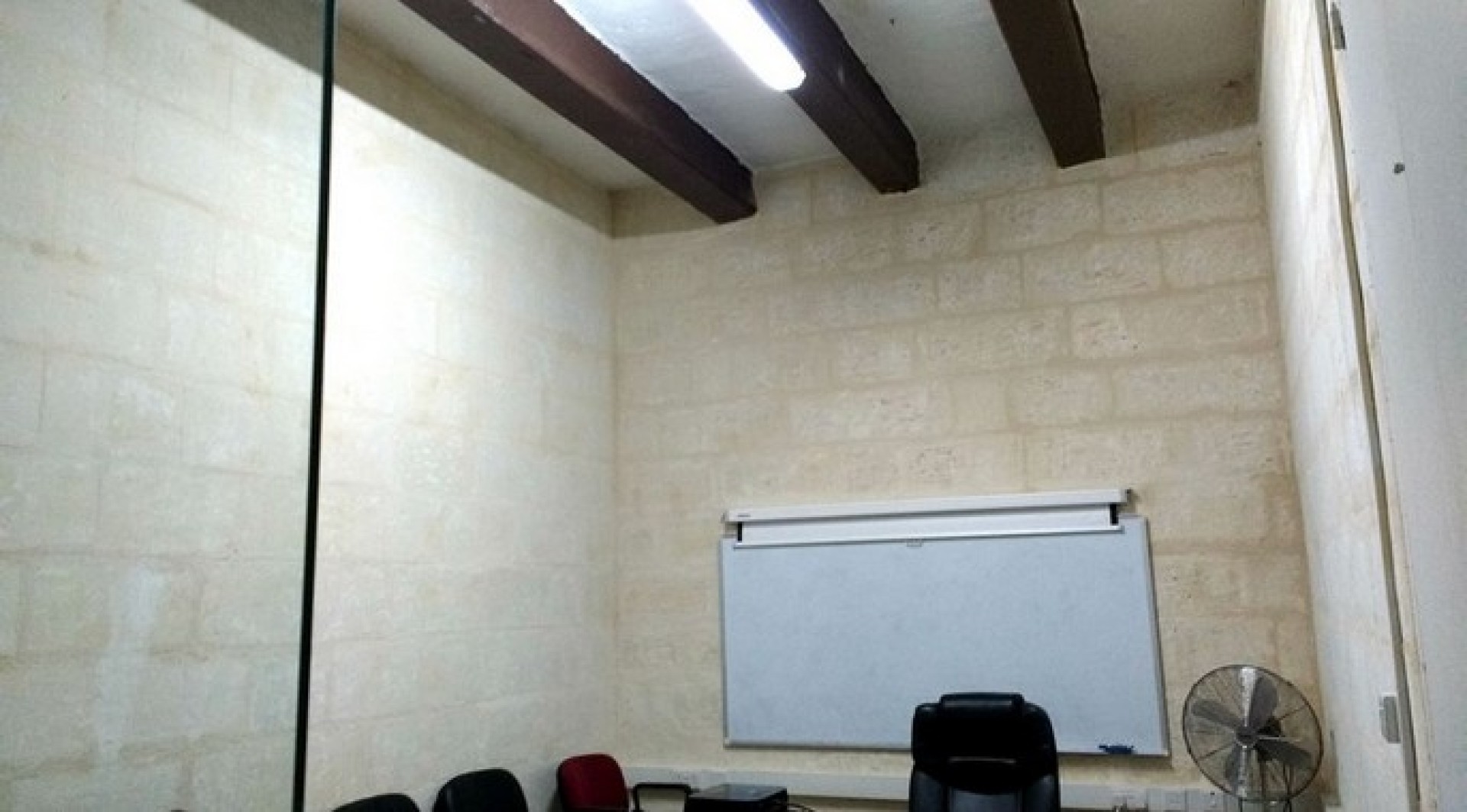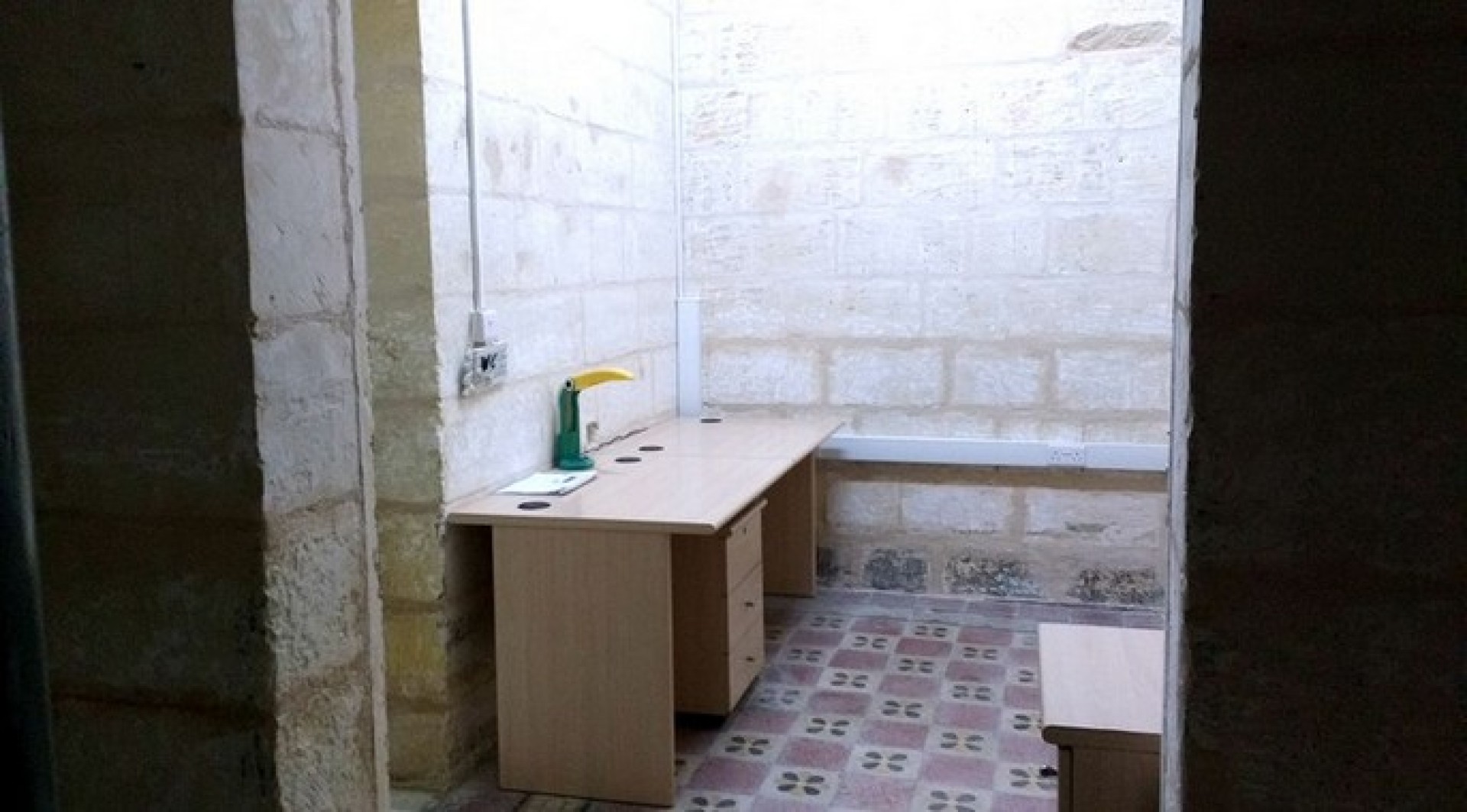 This 55 sqm office in Floriana is situated in  aprime area. On entry from private door, one finds a nice reception area or small office which can house 1 employee. Interconnected one will find a spacious room (currently used as a boardroom) which can take up around 3-4 employees. There is another 1/2 person office on the backside connected with a bathroom and a small kitchenette area. There is access to an internal courtyard. Office is rented unfurnished.